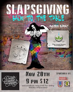 SLAPSGIVING: Back to the Table is sure to be the most exciting night of your holiday season, all with the objective of supporting a fantastic charitable organization! Enjoy as our members showboat, sass, and strong arm their way to the top of the bracket. All in pursuit of the title of SLAPSGIVING WRESTLING CHAMPION.